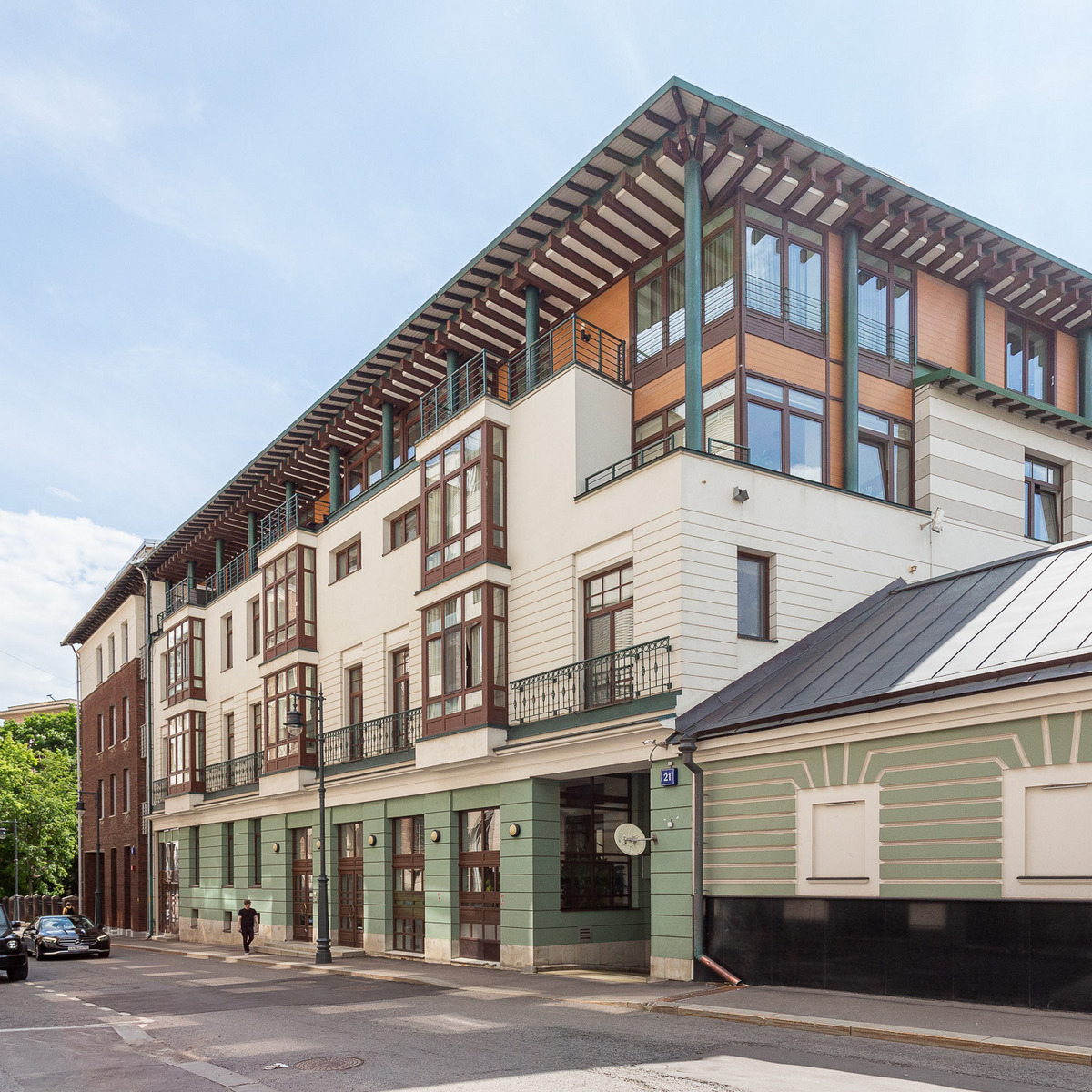 Желающих купить квартиру в ЖК Английский квартал также привлекают разнообразные объекты внутренней инфраструктуры, расположенные на нижних этажах зданий. Для жильцов комплекса работают магазины, рестораны, фитнес-клуб, кафе, салоны красоты, и конечно же, английский клуб. Для стоянки автомобилей построена двухуровневая подземная парковка.