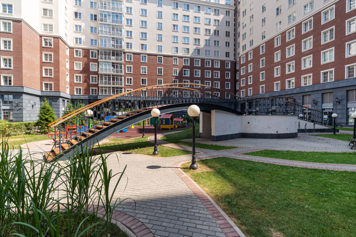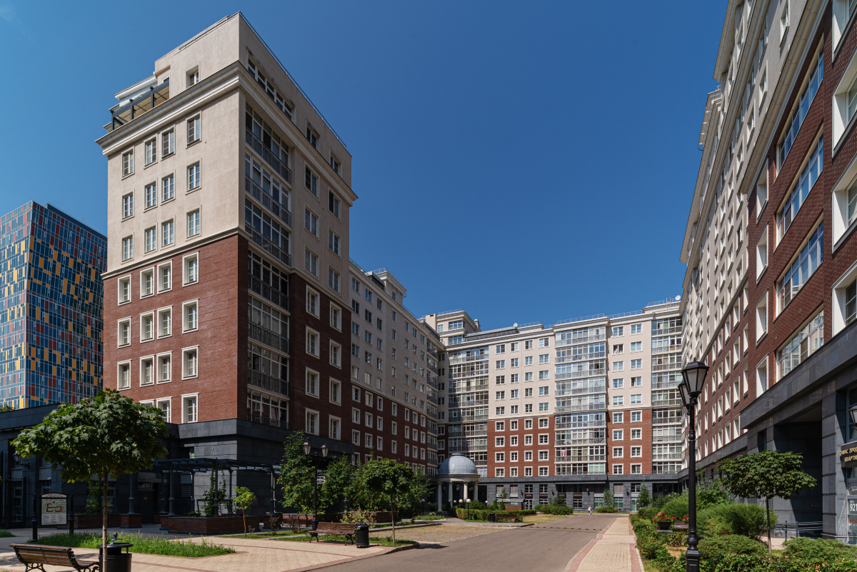 Вы можете купить квартиру в ЖК Английский Квартал на Мытной в Москве в одном из нескольких элитных домов, высотой от 11 до 14 этажей. Всего в комплексе 949 квартир с 3-метровыми потолками. На выбор покупателям представляется несколько вариантов планировки. В домах работают высокоскоростные лифты OTIS. В зависимости от того, на какую сторону выходят окна, из квартир может открываться вид на Воробьевы Горы, Кремль, или Храм Христа Спасителя. Вся территория квартала огорожена и находится под охраной, въезд осуществляется по пропускной системе, работает консьерж-служба.
