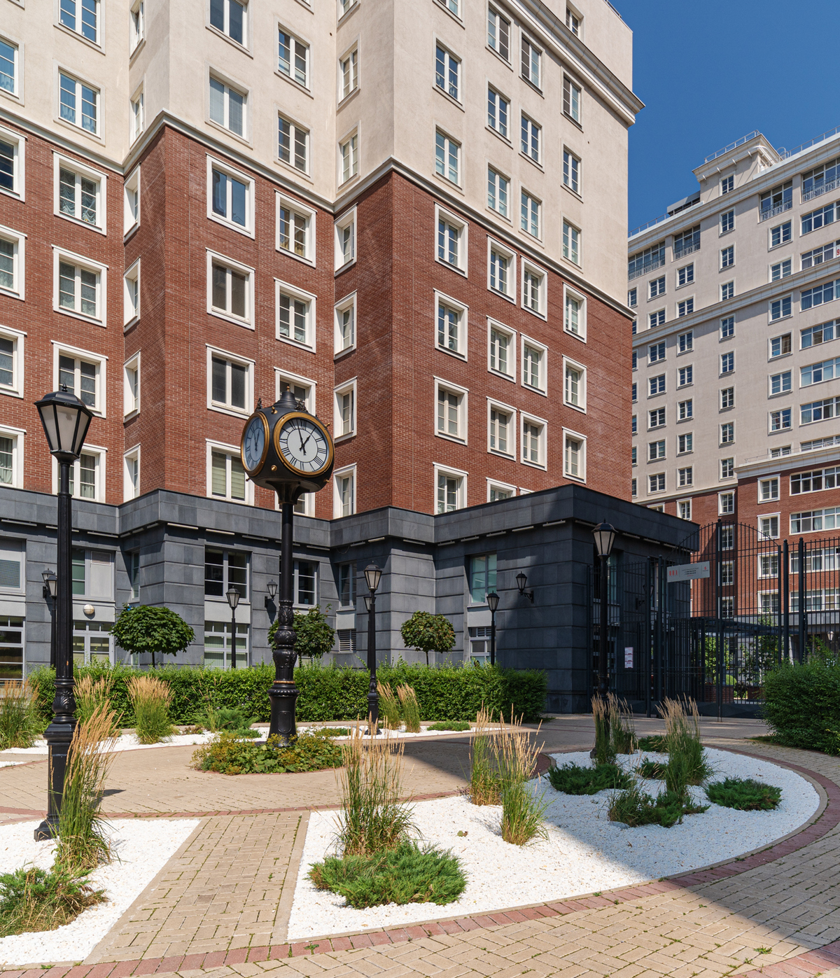 Вы можете купить квартиру в ЖК Английский Квартал на Мытной в Москве в одном из нескольких элитных домов, высотой от 11 до 14 этажей. Всего в комплексе 949 квартир с 3-метровыми потолками. На выбор покупателям представляется несколько вариантов планировки. В домах работают высокоскоростные лифты OTIS. В зависимости от того, на какую сторону выходят окна, из квартир может открываться вид на Воробьевы Горы, Кремль, или Храм Христа Спасителя. Вся территория квартала огорожена и находится под охраной, въезд осуществляется по пропускной системе, работает консьерж-служба.
